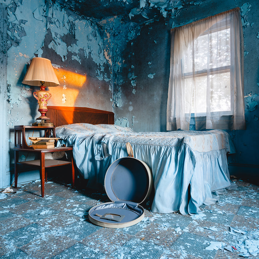 A bedroom in an abandoned farmhouse during a winter morning sunrise. Sitting in this home, taking in the silence on this cold morning, looking at all that had been left behind, was one of the most surreal feelings I have experienced in the years I have photographed abandoned homes. Photo taken in 2022.